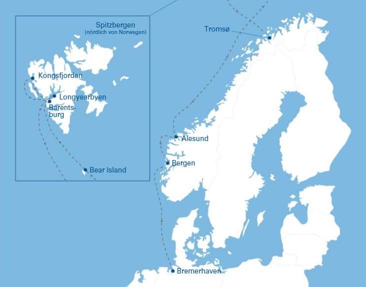 De eerste cruise naar de Noorse Fjorden start op 9 juni, een 8-daagse cruise vanuit Bremerhaven. Deze cruise combineert de Fjorden met enkele pareltjes van de Duitse Waddeneilanden. Je vaart vanuit Bremerhaven naar Stavanger, Bergen, Wyk (eiland Föhr), het eiland Norderney en het eiland Borkum. Vanaf €2450 (buitenhut).